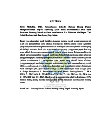 Mufadila, Putri (2026) Pemanfaatan bokashi batang pisang dalam mengefisiensikan pupuk kandang ayam pada pertumbuhan dan hasil tanaman bawang merah (Allium ascalonicum L.). Sarjana thesis, UIN Sunan Gunung Djati Bandung.