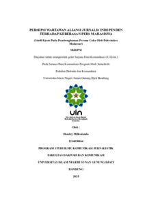INDONESIA: Penelitian ini bertujuan untuk mengetahui bagaimana wartawan AJI menyeleksi, mengorganisasikan, menginterpretasikan, dan mengingat kembali informasi mengenai kebebasan pers di Indonesia melalui kasus pembungkaman Persma CAKA. Latar belakang penelitian ini didasari oleh maraknya pelanggaran terhadap kebebasan pers di Indonesia, termasuk kriminalisasi terhadap jurnalis mahasiswa yang belum memiliki perlindungan hukum yang jelas. Penelitian ini menggunakan paradigma konstruktivisme dengan pendekatan kualitatif dan metode studi kasus. Data dikumpulkan melalui wawancara mendalam, observasi, dan dokumentasi terhadap wartawan AJI Bandung, kemudian divalidasi dengan teknik triangulasi sumber, teknik, dan waktu. Analisis data dilakukan menggunakan model interaktif Miles & Huberman yang meliputi reduksi data, penyajian data, dan penarikan kesimpulan. Hasil penelitian menunjukkan bahwa wartawan AJI Bandung menjalankan proses seleksi informasi secara hati-hati dan berbasis verifikasi dalam memahami isu pembungkaman Persma CAKA. Proses pengorganisasian dilakukan secara kolektif dan sistematis untuk memastikan setiap informasi disusun berdasarkan urgensi dan relevansi fakta. Dalam tahap interpretasi, wartawan AJI menilai kasus ini sebagai pelanggaran terhadap prinsip kebebasan pers dan kebebasan akademik. Sedangkan pada tahap memori, AJI berupaya menjaga ingatan kolektif atas kasus ini sebagai bentuk advokasi dan pembelajaran bersama bagi komunitas jurnalis. Secara keseluruhan, penelitian ini menegaskan bahwa AJI berperan penting sebagai penjaga nilai-nilai kebebasan pers di Indonesia. AJI tidak hanya berfungsi sebagai organisasi profesi, tetapi juga sebagai lembaga advokasi yang memperjuangkan hak jurnalis dan kebebasan berekspresi, khususnya di ranah akademik. Hasil penelitian ini diharapkan dapat menjadi referensi bagi akademisi, jurnalis, serta lembaga pers dalam memahami dinamika kebebasan pers di era digital dan demokrasi modern. ENGLISH: This study aims to determine how AJI journalists select, organize, interpret, and recall information about press freedom in Indonesia through the case of the silencing of Persma CAKA. The background of this study is based on the rampant violations of press freedom in Indonesia, including the criminalization of student journalists who do not yet have clear legal protection. This study uses a constructivist paradigm with a qualitative approach and case study method. Data were collected through in-depth interviews, observation, and documentation of AJI Bandung journalists, then validated using source, technique, and time triangulation techniques. Data analysis was conducted using the Miles & Huberman interactive model, which includes data reduction, data presentation, and conclusion drawing. The results of the study show that AJI Bandung journalists carefully select information based on verification in understanding the issue of the silencing of Persma CAKA. The organization process is carried out collectively and systematically to ensure that each piece of information is compiled based on the urgency and relevance of the facts. In the interpretation stage, AJI journalists assess this case as a violation of the principles of press freedom and academic freedom. Meanwhile, in the memory stage, AJI strives to preserve the collective memory of this case as a form of advocacy and shared learning for the journalist community. Overall, this study confirms that AJI plays an important role as the guardian of press freedom values in Indonesia. AJI not only functions as a professional organization, but also as an advocacy institution that fights for journalists' rights and freedom of expression, especially in the academic sphere. The results of this study are expected to serve as a reference for academics, journalists, and press institutions in understanding the dynamics of press freedom in the digital age and modern democracy.