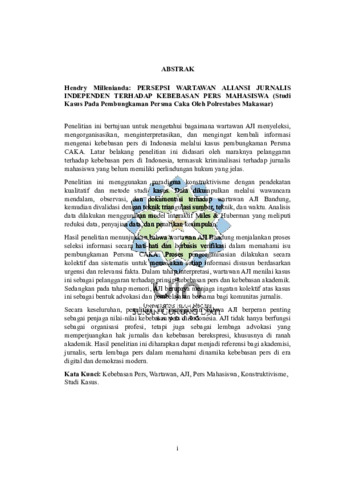 Persepsi wartawan aliansi jurnalis independen terhadap kebebasan pers mahasiswa : Studi kasus pada pembungkaman Persma Caka oleh Polrestabes Makassar