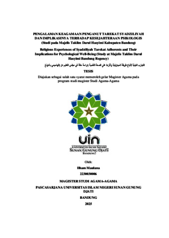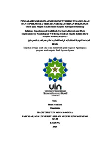 Pengalaman keagamaan penganut Tarekat Syadziliyah dan implikasinya terhadap kesejahteraan Psikologis: Studi pada Majelis Taklim Darul Hasyimi Kabupaten Bandung