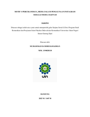 Ramadhan, Muhammad Dandhi (2025) Motif @percikaniman_media dalam penggunaan Instagram sebagai media dakwah. Sarjana thesis, UIN Sunan Gunung Djati Bandung.