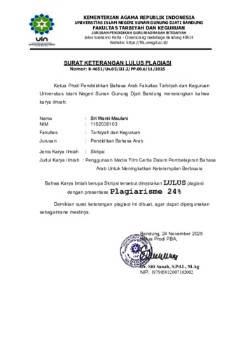 | Divisions: | Fakultas Tarbiyah dan Keguruan > Program Studi Pendidikan Bahasa Arab |